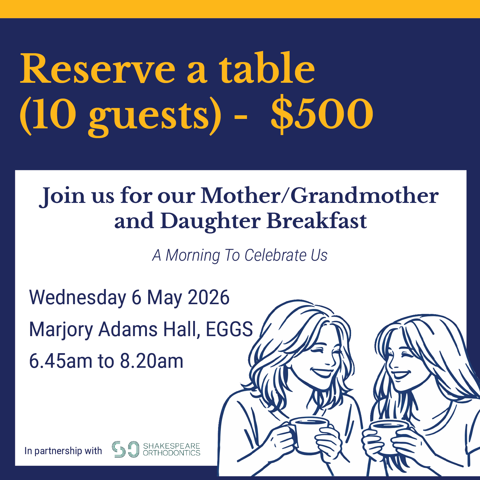 Join us on Wednesday 6 May, from 6.45 to 8.20am for a morning filled with connection, reflection, and shared moments. This is a wonderful opportunity to enjoy quality time with your daughters, share a delicious breakfast, and hear from our inspirational guest speaker.